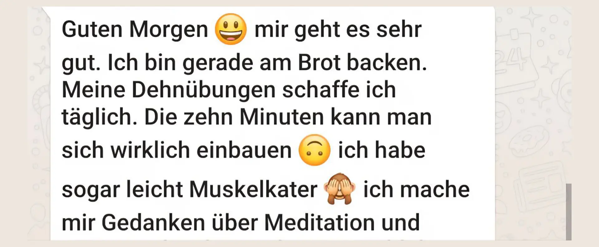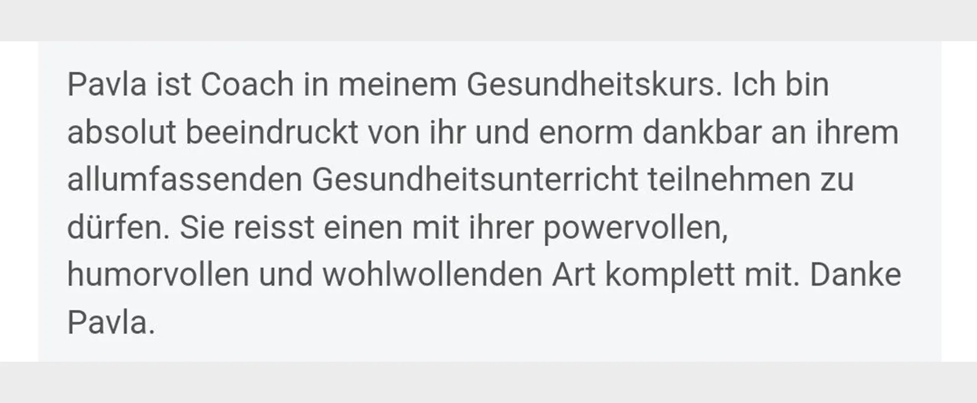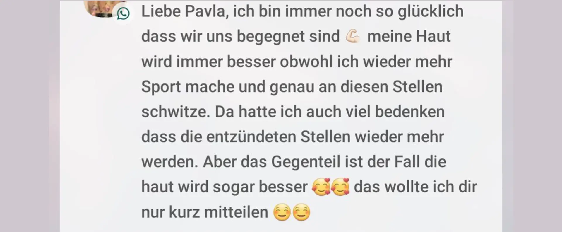 Mit Pavlas Unterstützung fand ich den Wendepunkt: Ich wurde rauchfrei ohne Rückfall, mein Stoffwechsel erholte sich und meine Energie kehrte zurück. Heute habe ich Geduld mit mir, treffe klare Entscheidungen und gehe mutig neue Wege. Pavlas Wissen und einfühlsame Art halfen mir, mich selbst zu führen.“